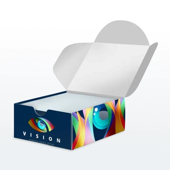 With Akuafoil Business Card Boxes, your customers will see the quality of their business cards before they even open the box! Produced on durable, bright white stock, these are printed with our unique Akuafoil metallic inks under a 4-color process. Akuafoil Business Card Boxes are easy self-tuck boxes with no glue required. Business Card Boxes ship flat.